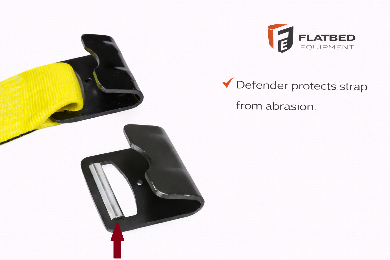 Wide contact area distributes tie-down force more evenly. Built-in defender helps reduce webbing wear at the hook connection point.