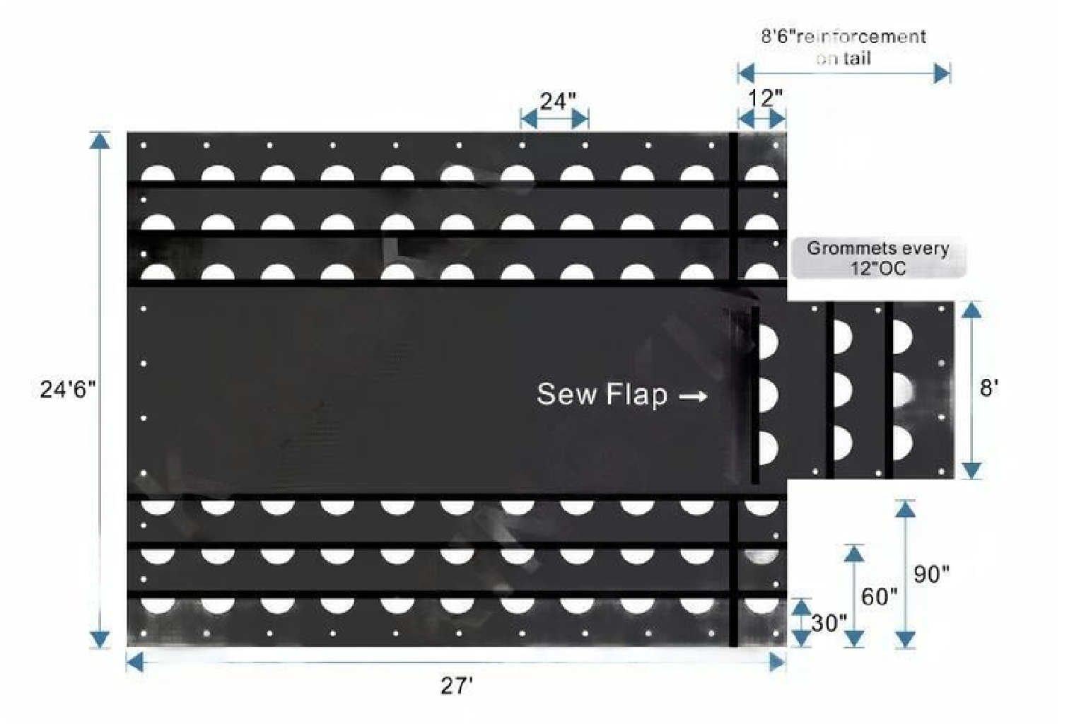 Grommet Spacing: Every 2 ft