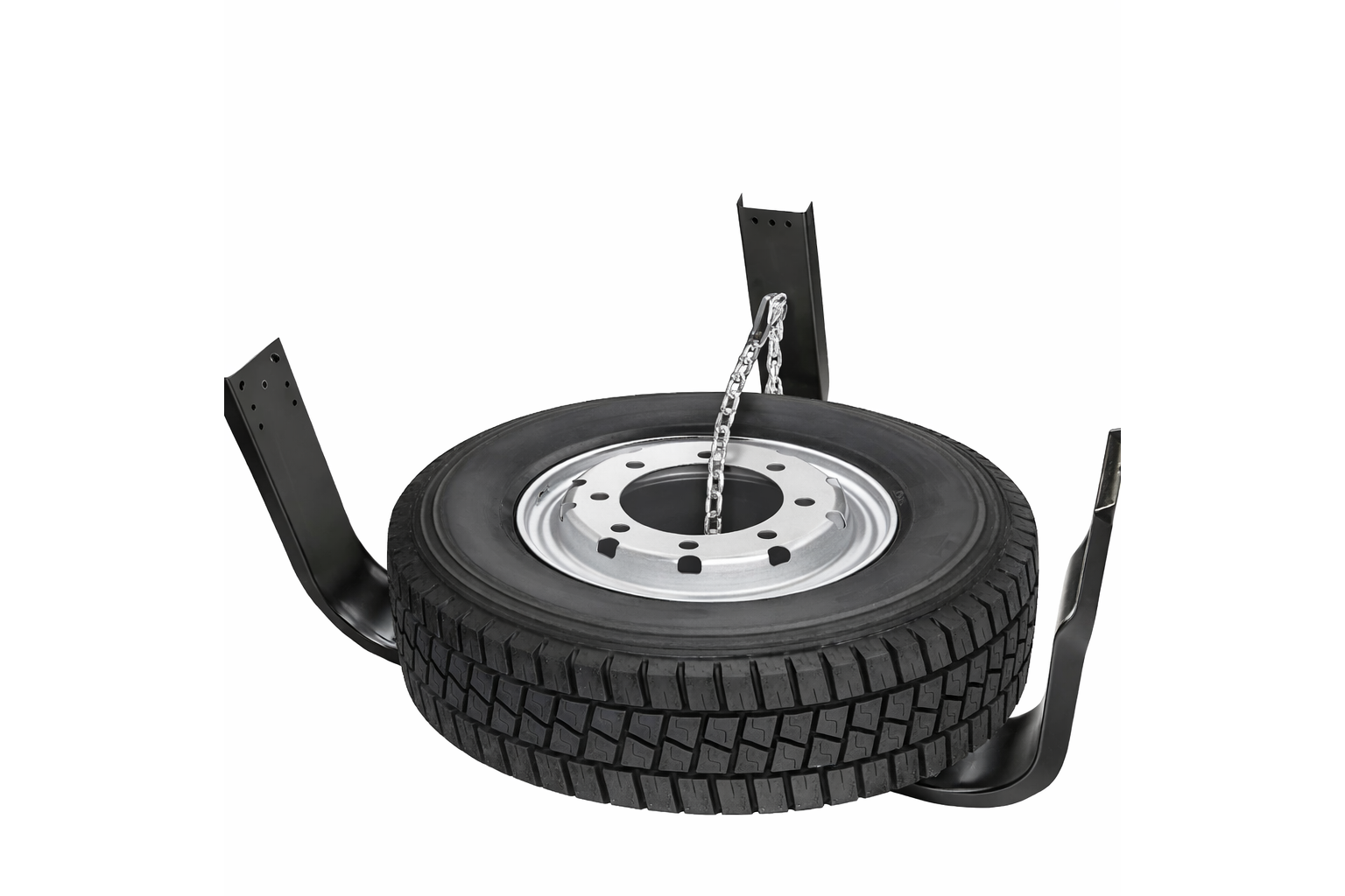 Includes a zinc-plated safety chain to help secure the tire and prevent movement during transport or overnight parking.